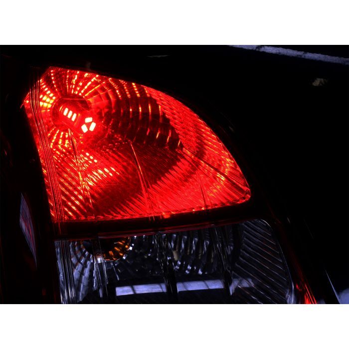 Diodlampa röd, bak/bromsljus med 12 starka dioder. Sockel BAY15d dubbelpolig. 9 dioder på sidorna som ger en bra spridning samt 3 dioder på toppen för att ge ett bra sken framåt.