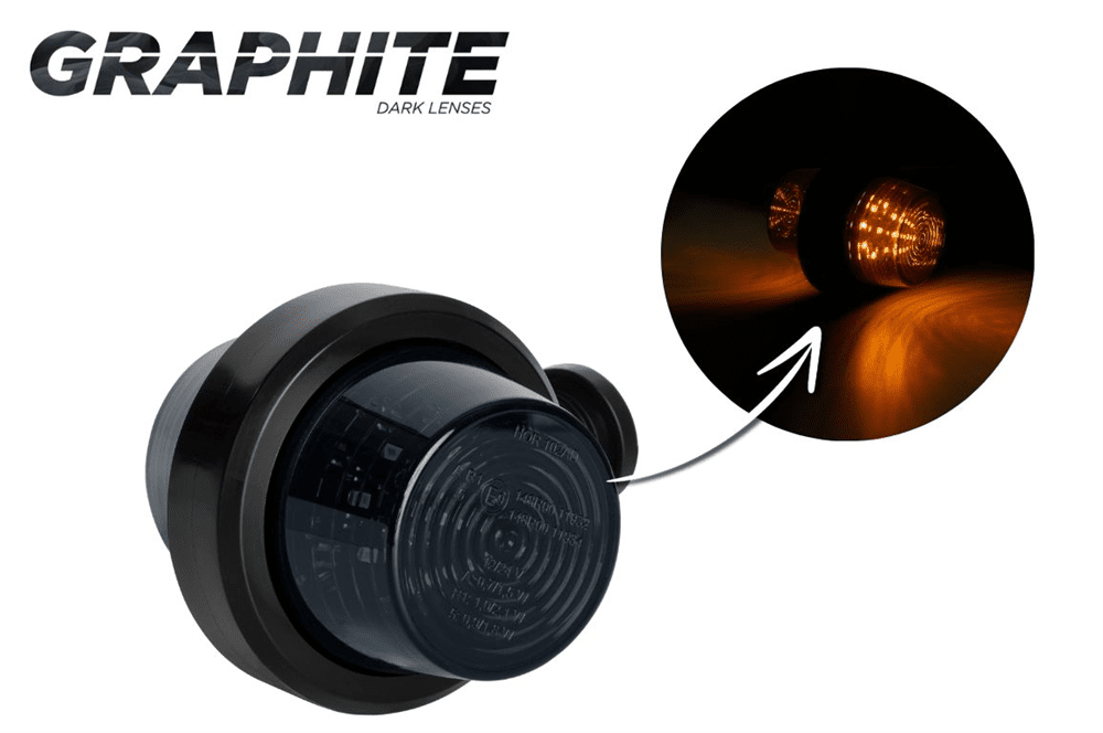 Blinkersljus ”GRAPHITE” med mörkt tonat glas på gummiarm. Välj mellan 2x5 m eller 0,5 m kabel!Köp -
