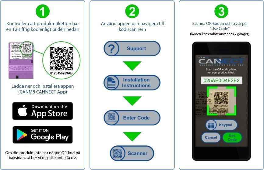 | Variant | Canbus Interface, Induktiv Canbus läsare, Canbus Interface + läsare, Canbus Interface – Helljus Pos.ljus |