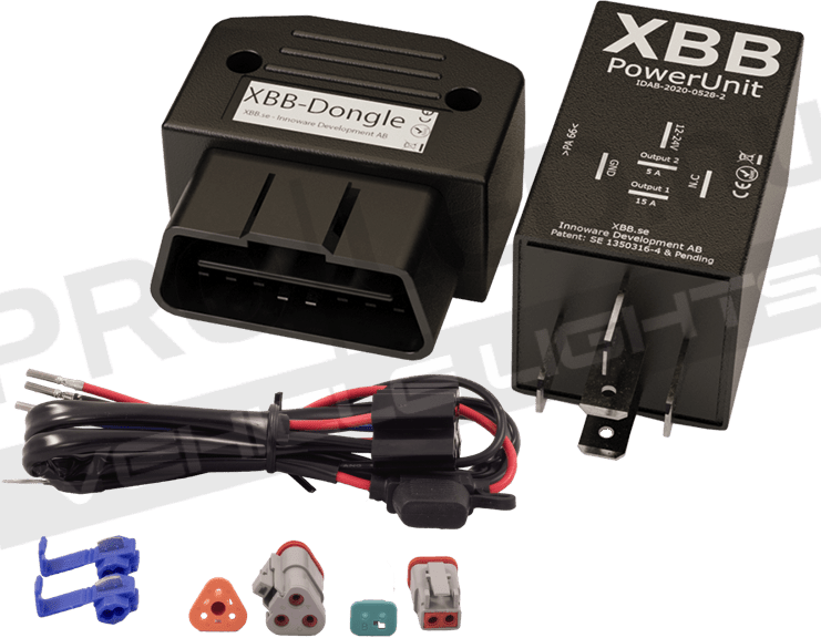 Ett kit bestående av en XBB Dongle, som monteras i bilens OBDII uttag, och en XBB PowerUnit (relä) som kommunicerar trådlöst via Bluetooth med Dongeln. Varje PowerUnit har två separata utgångar som är fullt programmerbara, så vill man exempelvis ha extraljus inkopplat på utgång 1 så kan man enkelt koppla in exempelvis positionsljus på utgång två.