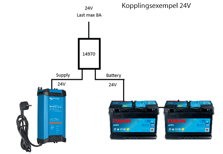 Spänningsomkopplare för 12V eller 24V med prioteringsfunktion.