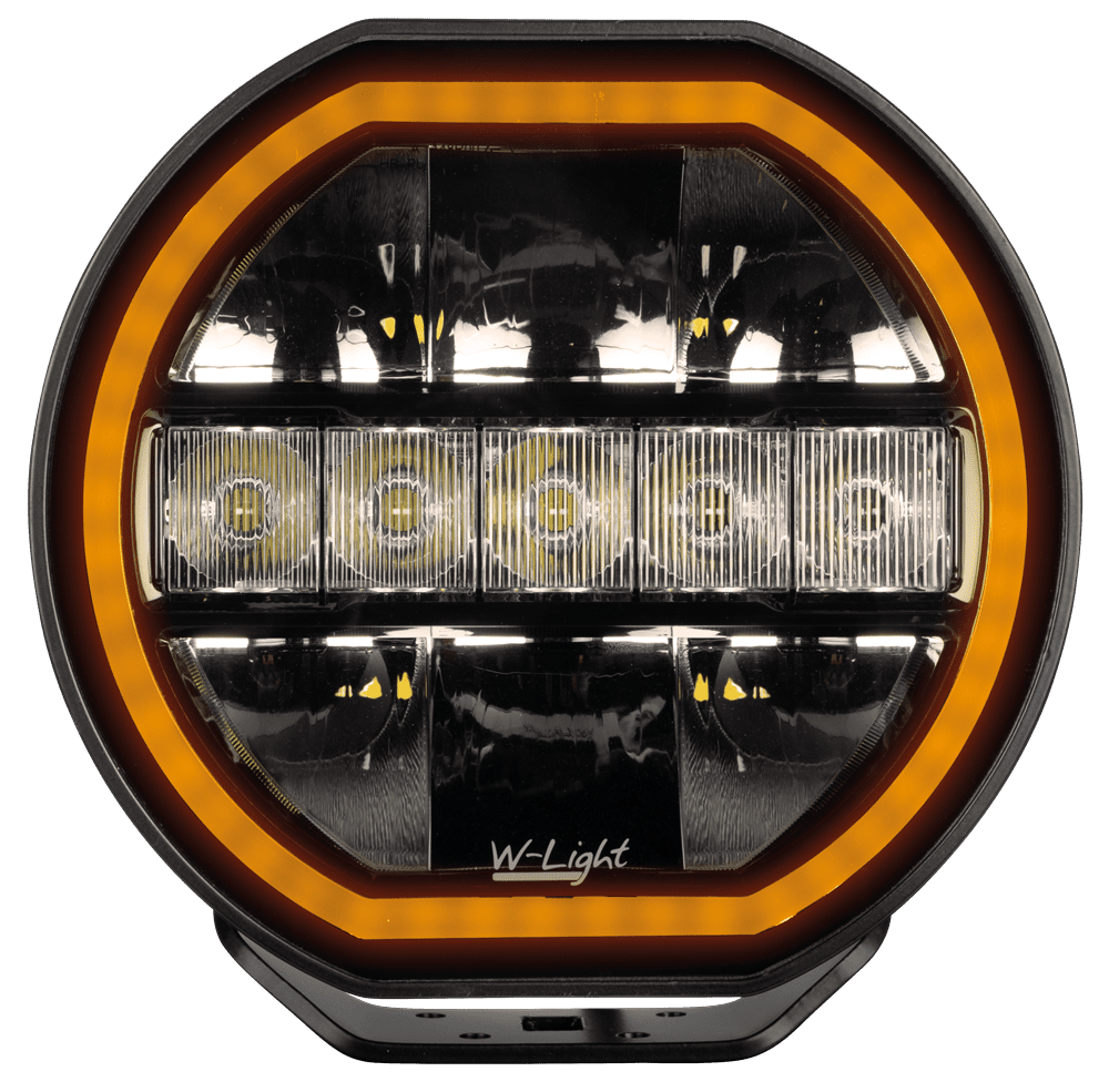 Eclipse 7” har en räckvidd på 550 meter (1 lux), ljusstyrka på 5400 uppmätta lumen och en färgtemperatur på 5500K. Designad med mörk optik och ett positionsljus format runt extraljusets ram. Välj mellan vitt och orange ljus.