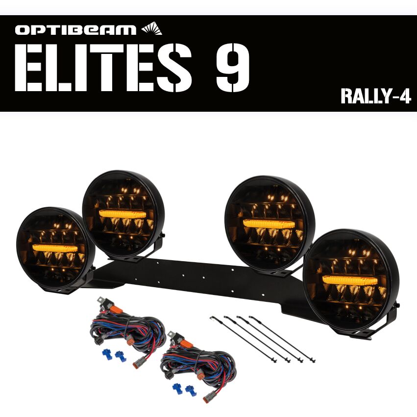 4-pack OPTIBEAM Elites 9″ – komplett paket, RALLY-4