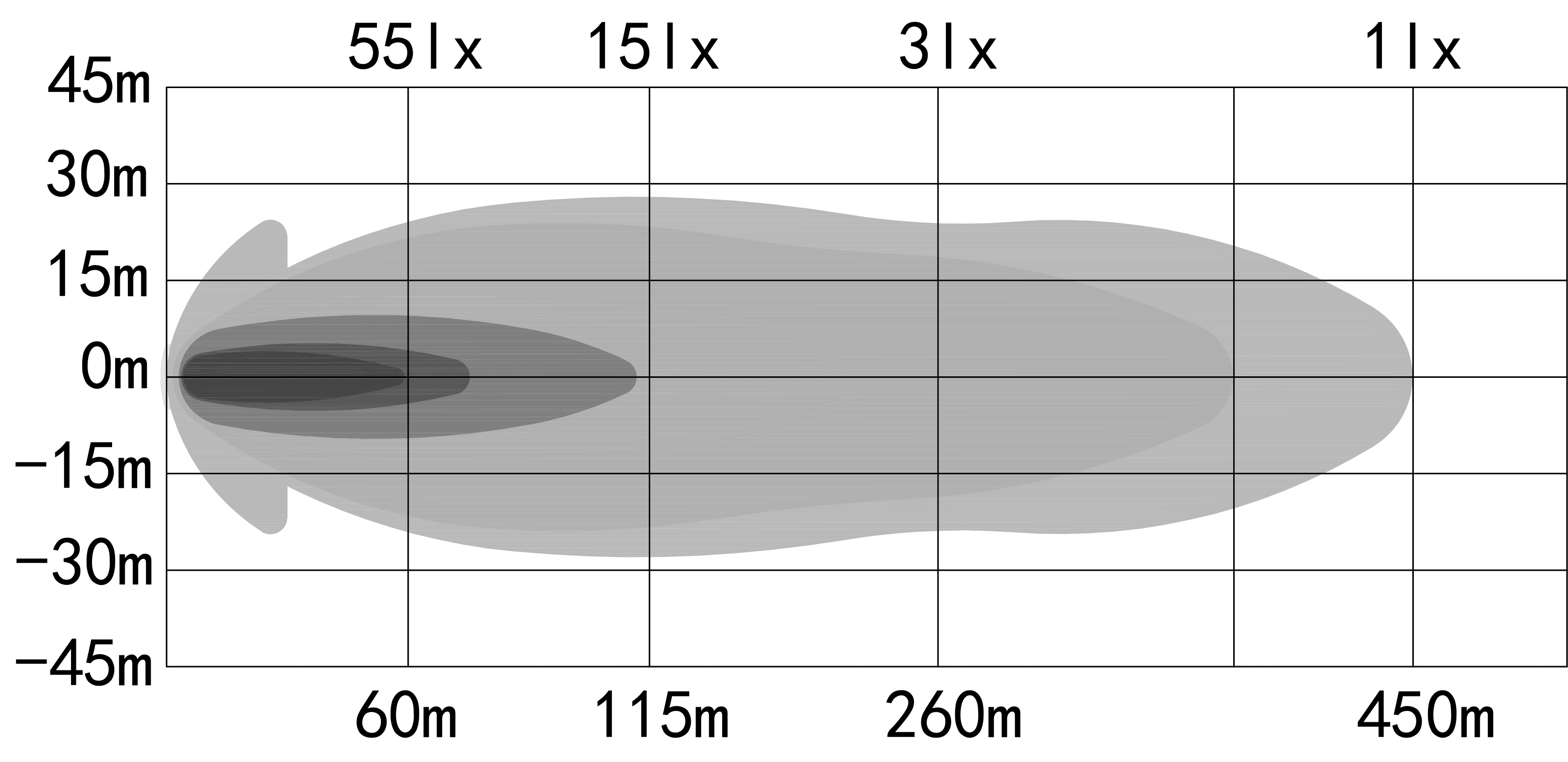 - 1 lux @ 450 m