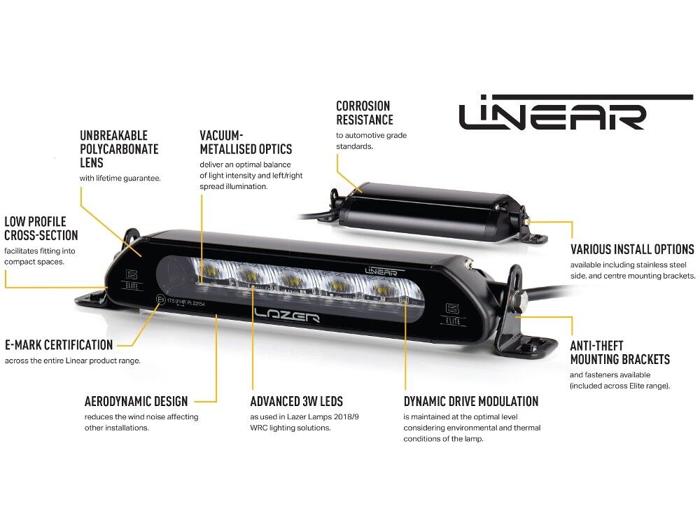 Linear är Lazers högklassiga serie med extraljusramper för vardagsbruk som finns tillgängliga i Standard och Elite-utförande. I Linear-serien kombineras den absolut högsta ljusprestandan med en slimmad och aerodynamisk design.