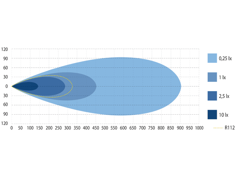 • Räckvidd: 1 lux @ 453 m, 1 lux @ 325 m (R112)