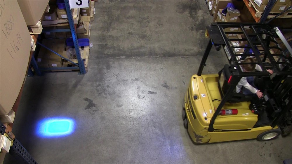 Skapar en koncentrerad blå ljuspunkt på marken framför eller bakom maskinen. Detta ökar säkerheten i arbetsmiljöer där man inte kan förlita sig helt på ljudsirener eller liknande.