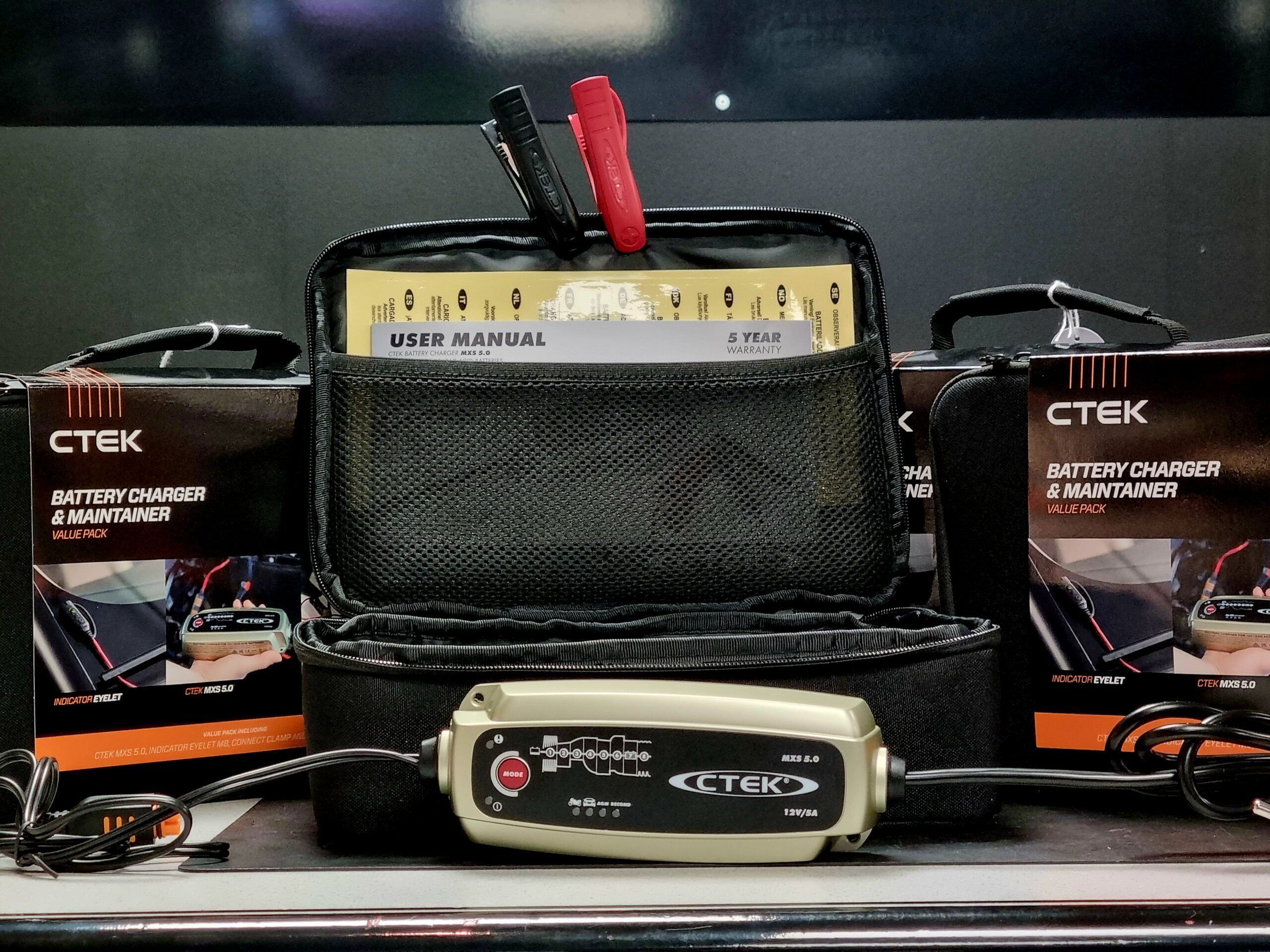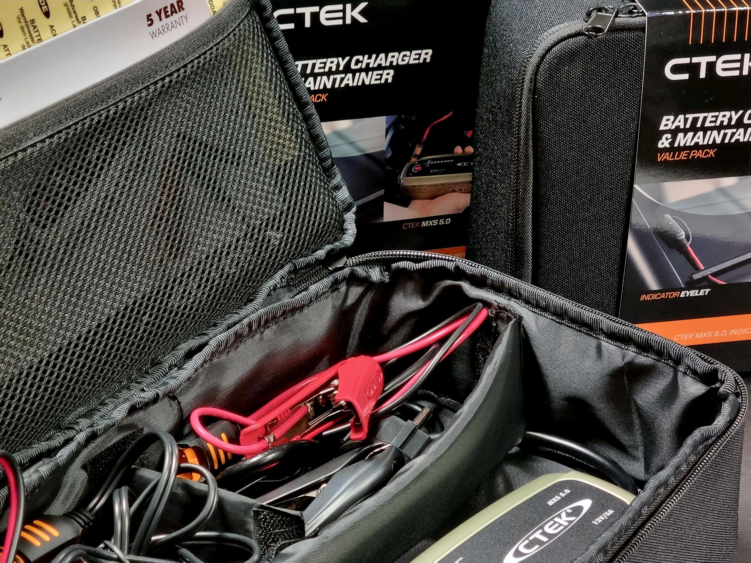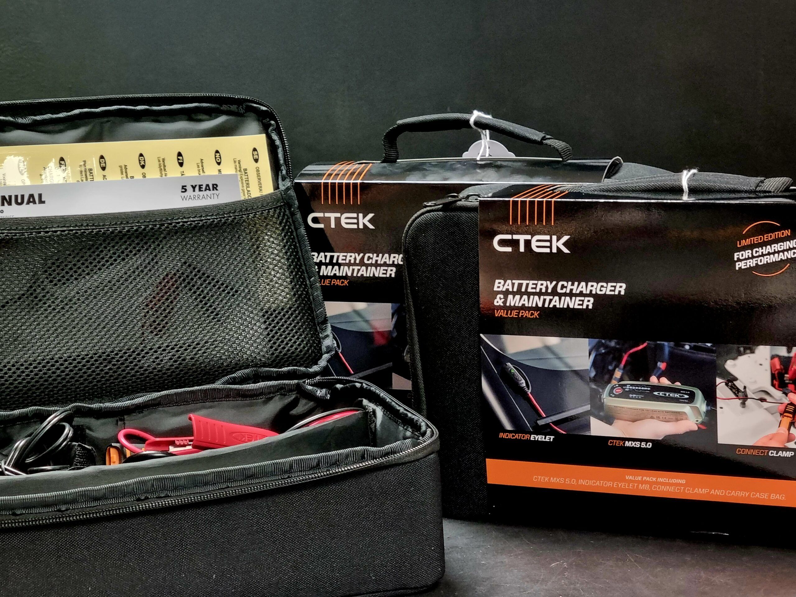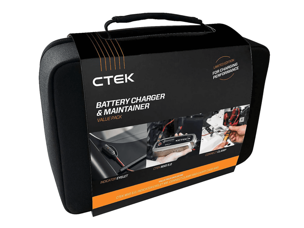 MXS 5.0 jubileumsförpackning innehåller två CTEK-produkter snyggt förpackade i en robust och högkvalitativ väska. Innehåller MXS 5.0 med tillhörande klämmor och en Indicator Eyelet M8. Kontakt Indicator Eyelet är idealisk för laddning och kontroll av svårtillgängliga eller dolda batterier.