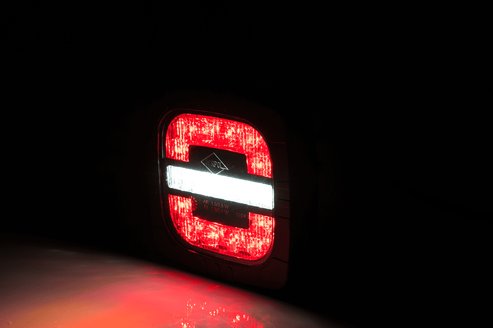 Bakljus med 3 funktioner. Positionsljus, bromsljus och blinkers. I den nätta storleken 101x101x35,5.Köp