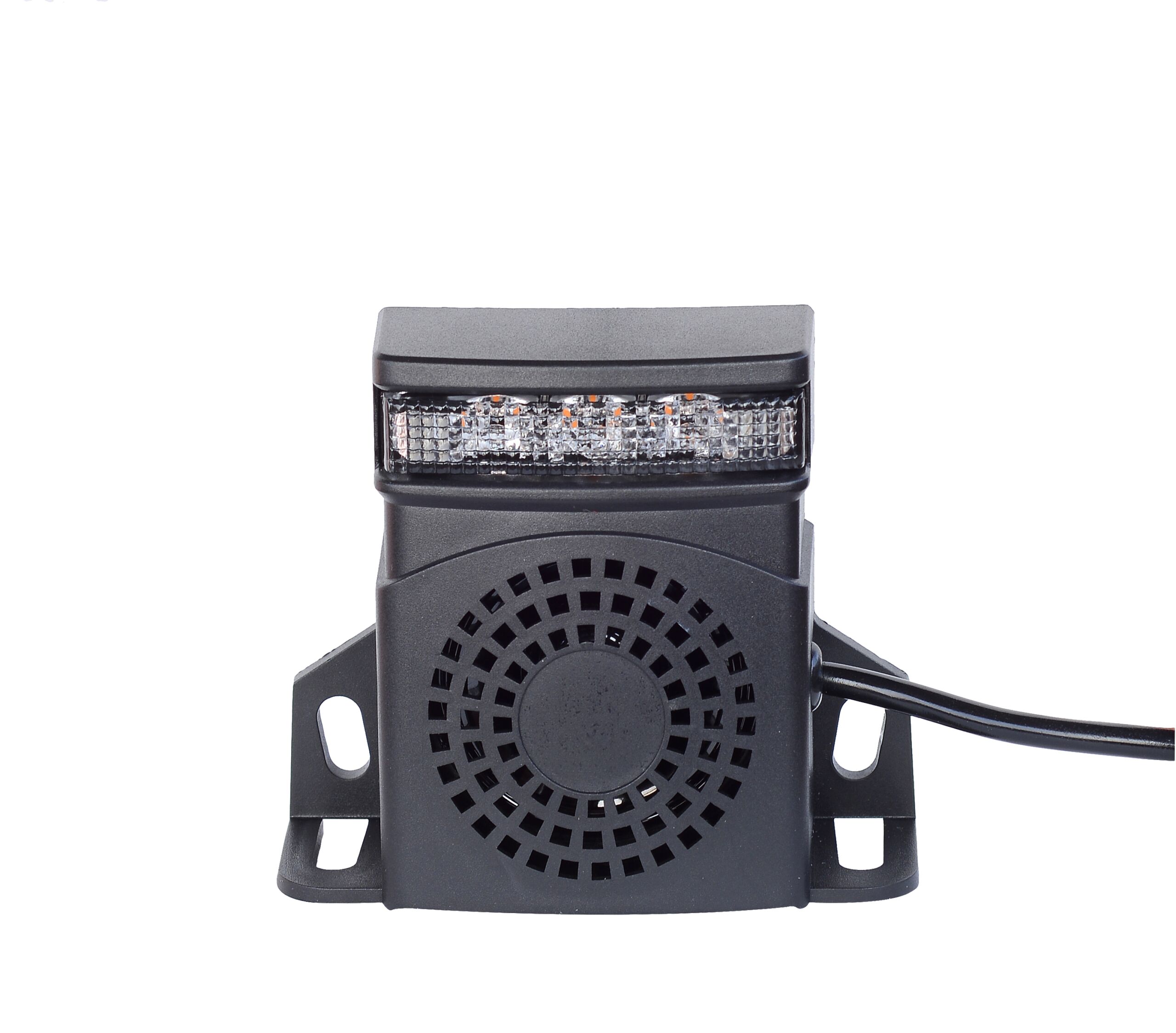 NYHET! Backvarnare med inbyggt blixtljus för en säkrare arbetsmiljö. Liten, kompakt och kraftfull med två funktioner. Den nya backvarnaren är särskilt lämplig på fordon i miljöer med hög ljudvolym – exempelvis vid logistikcenter.