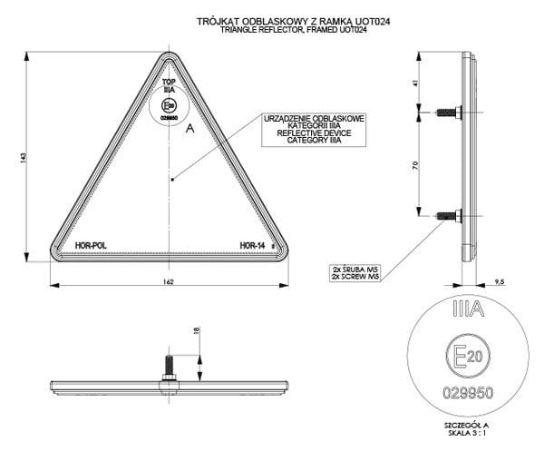 Triangel med reflex utan ram, eller med vit eller svart ram.
