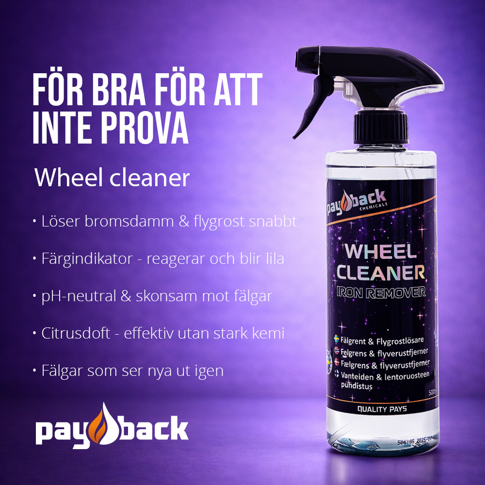 En snabbverkande och pH-neutral fälgrengöring som effektivt tar bort bromsdamm, flygrost, rostprickar, olja och smuts från fälgar och lack. Den är syrafri, skonsam mot alla material och reagerar med järnpartiklar genom att skifta till lila. Lätt biologiskt nedbrytbar och fri från PFAS.