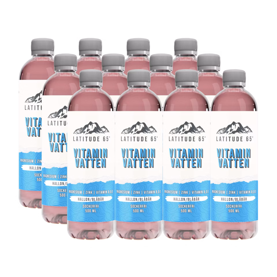 Svensktillverkad vitamindryck från Latitude 65, med en Fruktig smak av Hallon/blåbär.